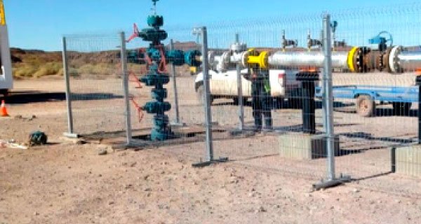 Presentación de postes en excavaciones y fijación de mallas a los mismos.